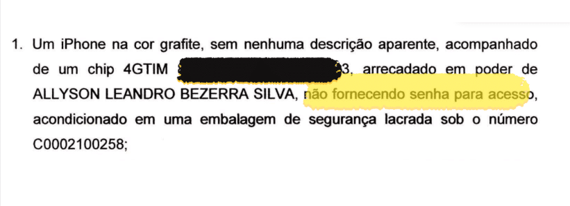 Documentos obtidos pelo Blog do Dina, no entanto, desmontam essa versão e revelam que o prefeito Allyson Bezerra omitiu da versão pública itens apreendidos e, em confronto direto com a versão de que nada tem a esconder, se recusou a dar as senhas dos aparelhos apreendidos pela Polícia Federal.